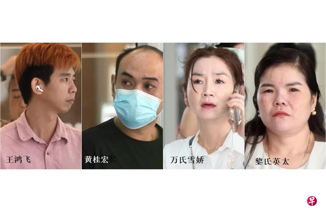 两名马国男子分别是黄桂宏(37岁,技术人员)和王鸿飞(33岁,技术人员)。两名越南女是万氏雪娇(38岁,摊位助理)和黎氏英太(42岁,厨师)。