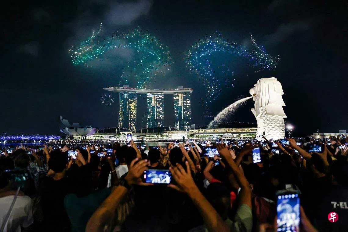 这场无人机灯光秀是新加坡旅游局、滨海湾金沙和大华银行合作,在滨海湾一带筹办的活动之一,希望为公众和游客带来丰富多彩的体验。