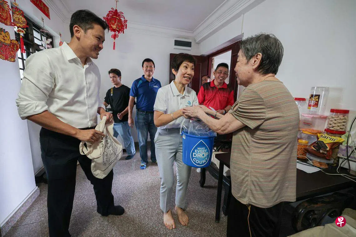 上午9时前,公用局的供水车停靠在永升路第181、182座组屋附近,让自带盛水器皿的居民在与供水车相连的水龙头自行取水。为了方便年长者,公用局将一台水袋制作专用设备带到现场,预制了数百个五公升的水袋。