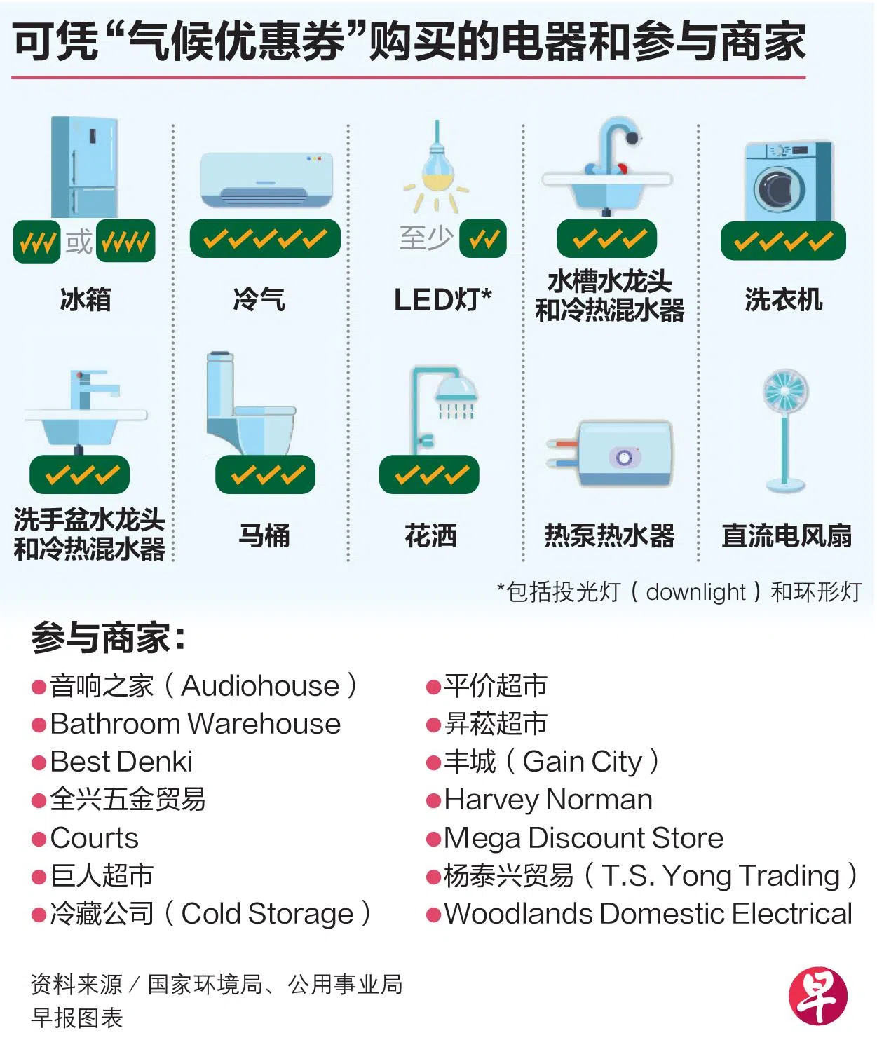此举旨在鼓励人们改用更节能省水的家电,进而降低水电费和碳排放,为减缓气候变化的影响尽一分力。