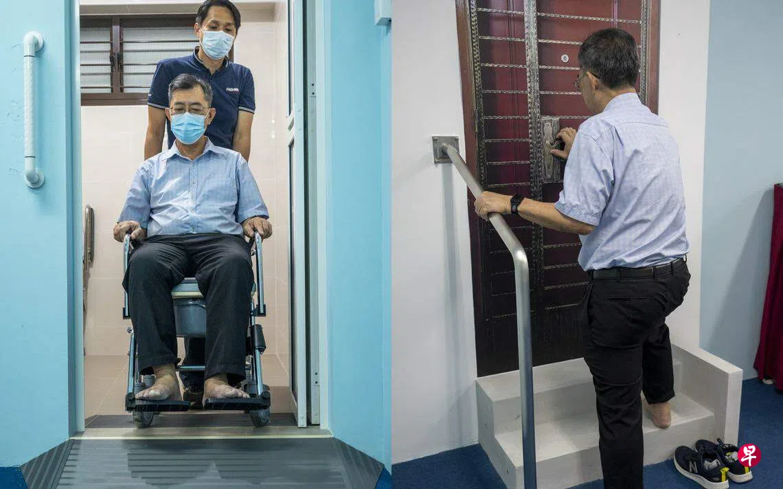 新设施包括浴室内的壁挂式折叠淋浴椅、在有梯级的大门旁安装扶手栏杆、加宽浴室和厕所的门,及居家防火警报器等。