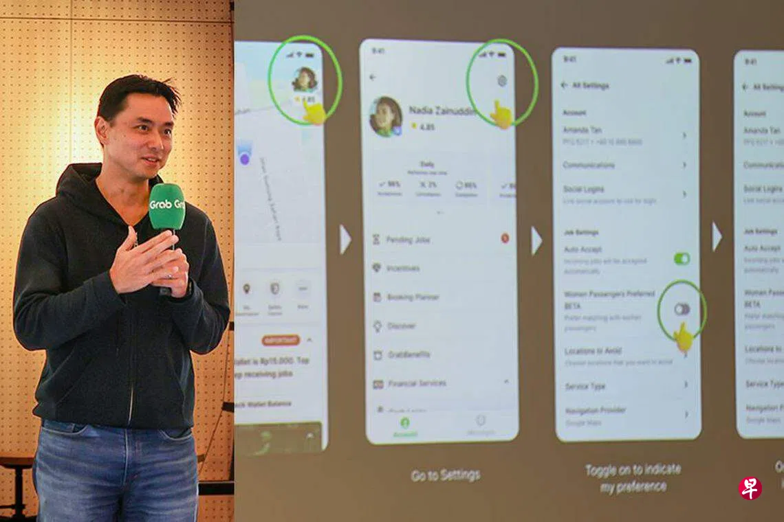 Grab新加坡董事经理余伟腾说,目前平台司机以男性居多,公司希望通过新举措,鼓励更多女性加入平台。“希望这能解决女性对安全方面的关切,消除她们觉得女性不适合驾驶的观念。”