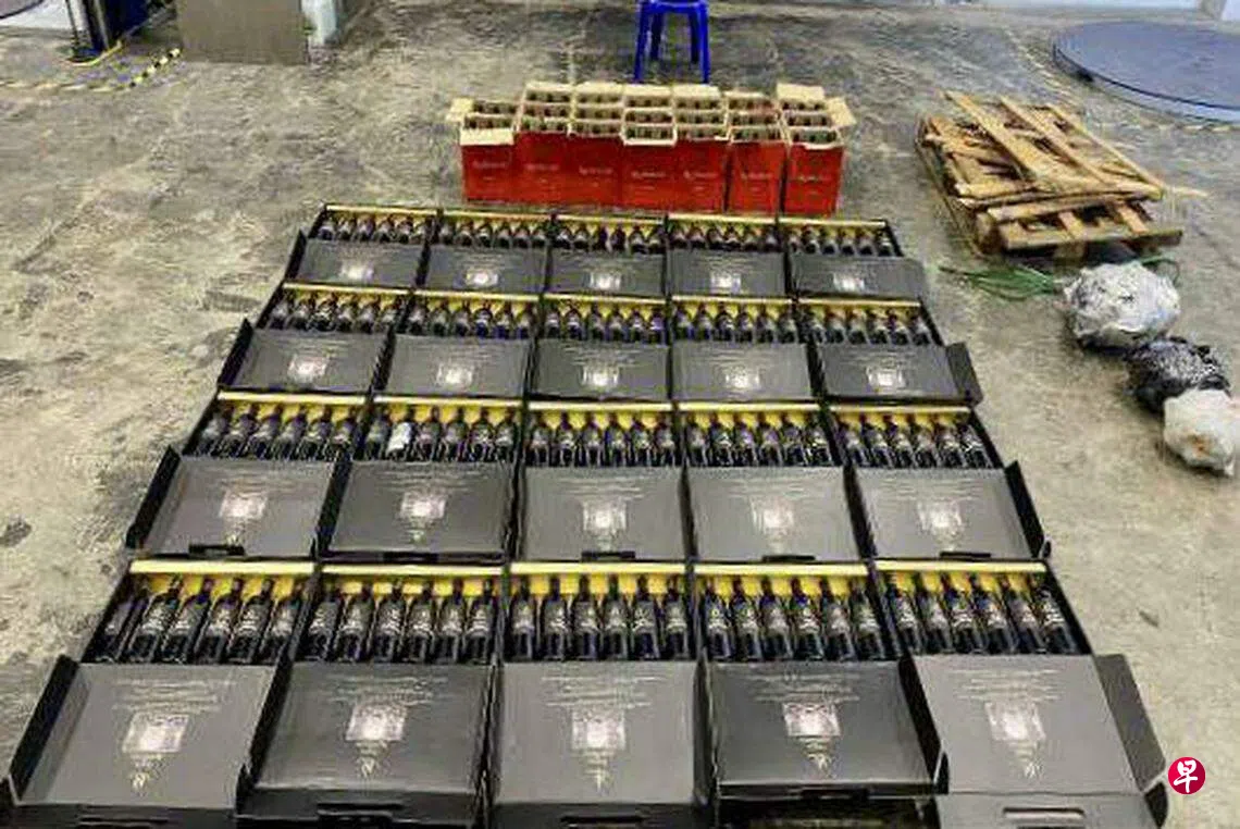 移民与关卡局在大士港口破获一起走私案,从一个入境货柜箱搜出240瓶漏税酒。