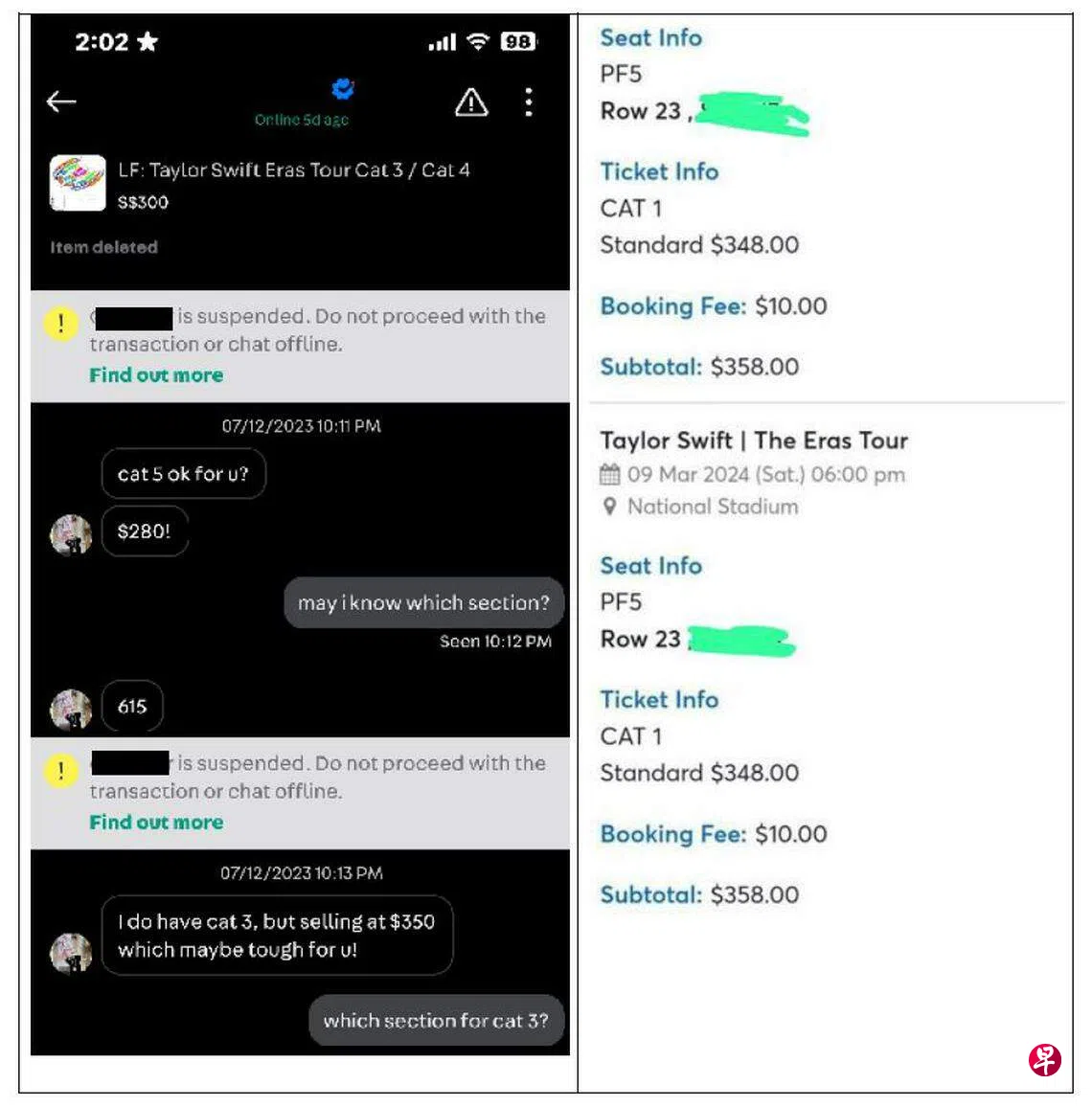 新加坡警察部队星期三(11日)发文告说,在3月3日至3月7日期间,警方收到通报,多名报案人称被网购平台Carousell上一名售卖泰勒丝演唱会门票的人骗。这名卖家在通过PayNow或银行转账收到钱之后并没有交付门票,买家想联系她时,她也已了无音讯。
