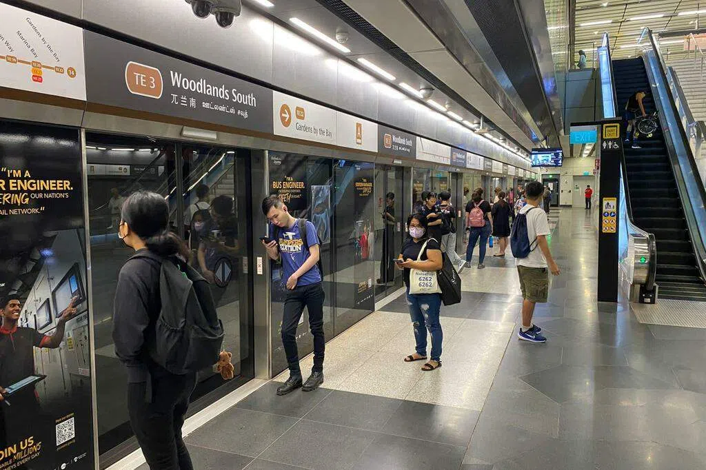 根据《新明日报》读者提供的照片,受影响的是通往滨海南码头(Marina South Pier)的南北线列车,不少乘客在月台等车。