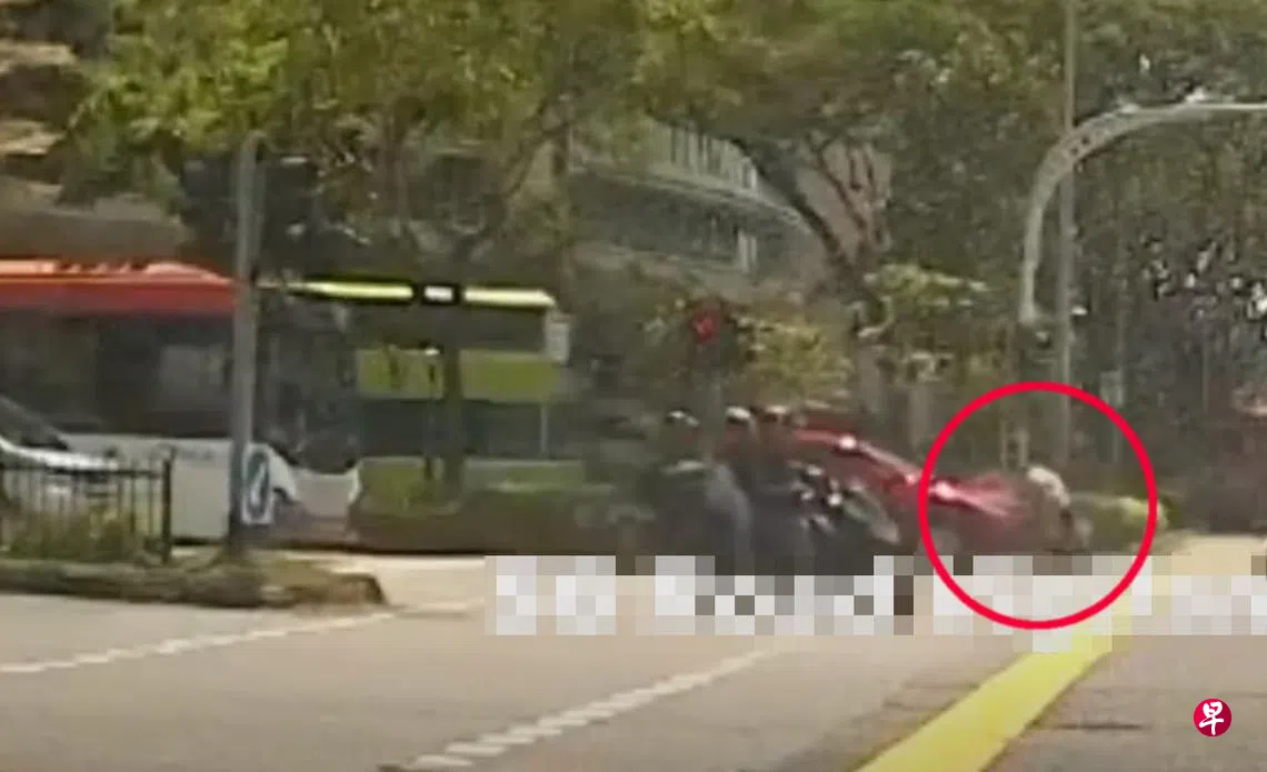 当妇女穿越马路时,交通灯已经显示红灯,她也有所意识,因此加速通过,并两度举手提醒其他驾驶人士。不过,当她快越过马路时,停在最左边的红色汽车疑因被巴士阻挡视线,没看到妇女,启动引擎后行驶,撞上了妇女,导致她倒地。