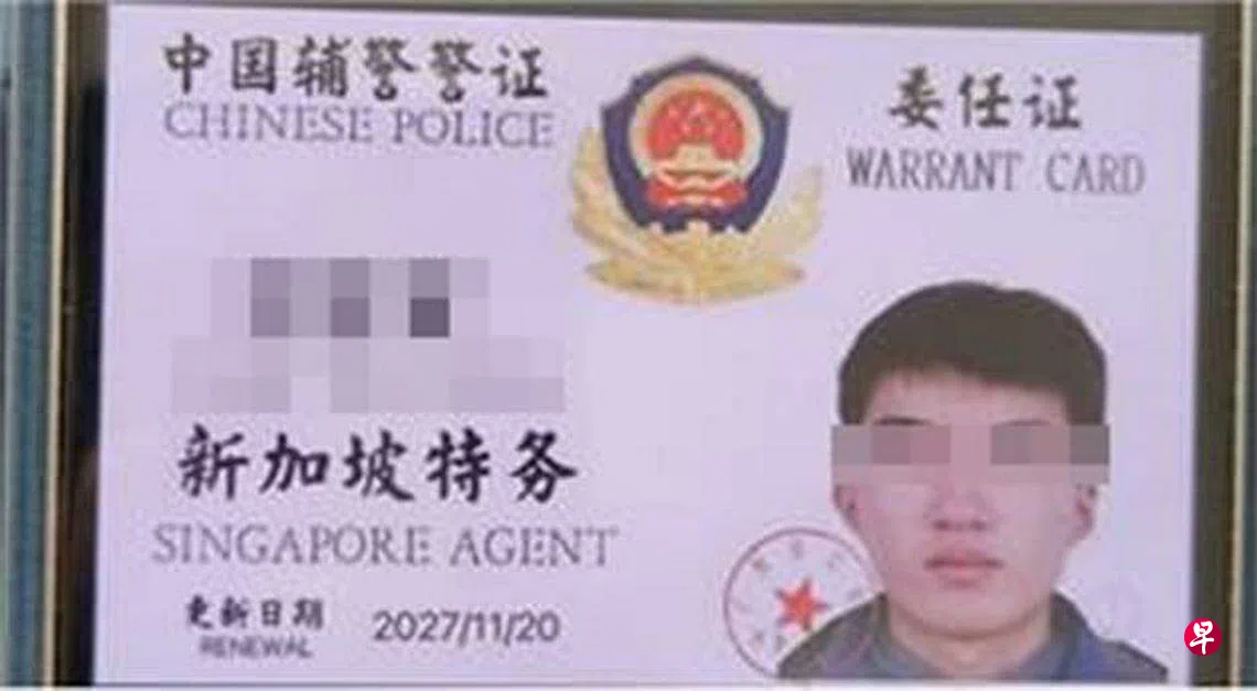 初步调查显示,涉案男子声称按照不法分子的指示冒充中国公安,陪同受害男子前往联昌银行购买银行本票。根据警方提供的照片,被捕男子随身携带的假公安证件,甚至印有“新加坡特务”的字样,试图鱼目混珠。