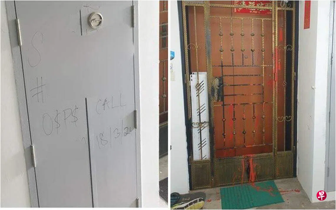 新加坡警察部队星期二(3月19日)发文告说,警方于星期一(18日)接获报案,指裕廊西52街的一个组屋发生大耳窿骚扰案件,其中一间单位的大门被泼红漆。