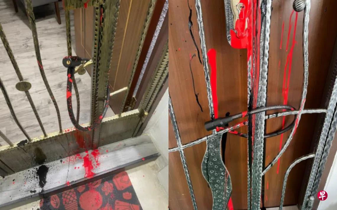 新加坡警察部队星期三(20日)发文告说,警方星期天(17日)接获两起报案,指义顺11街和义顺2道组屋分别发生大耳窿骚扰案件。两个组屋单位的大门和铁门都被泼了红色和黑色的油漆,铁门也都被脚踏车锁链锁上。