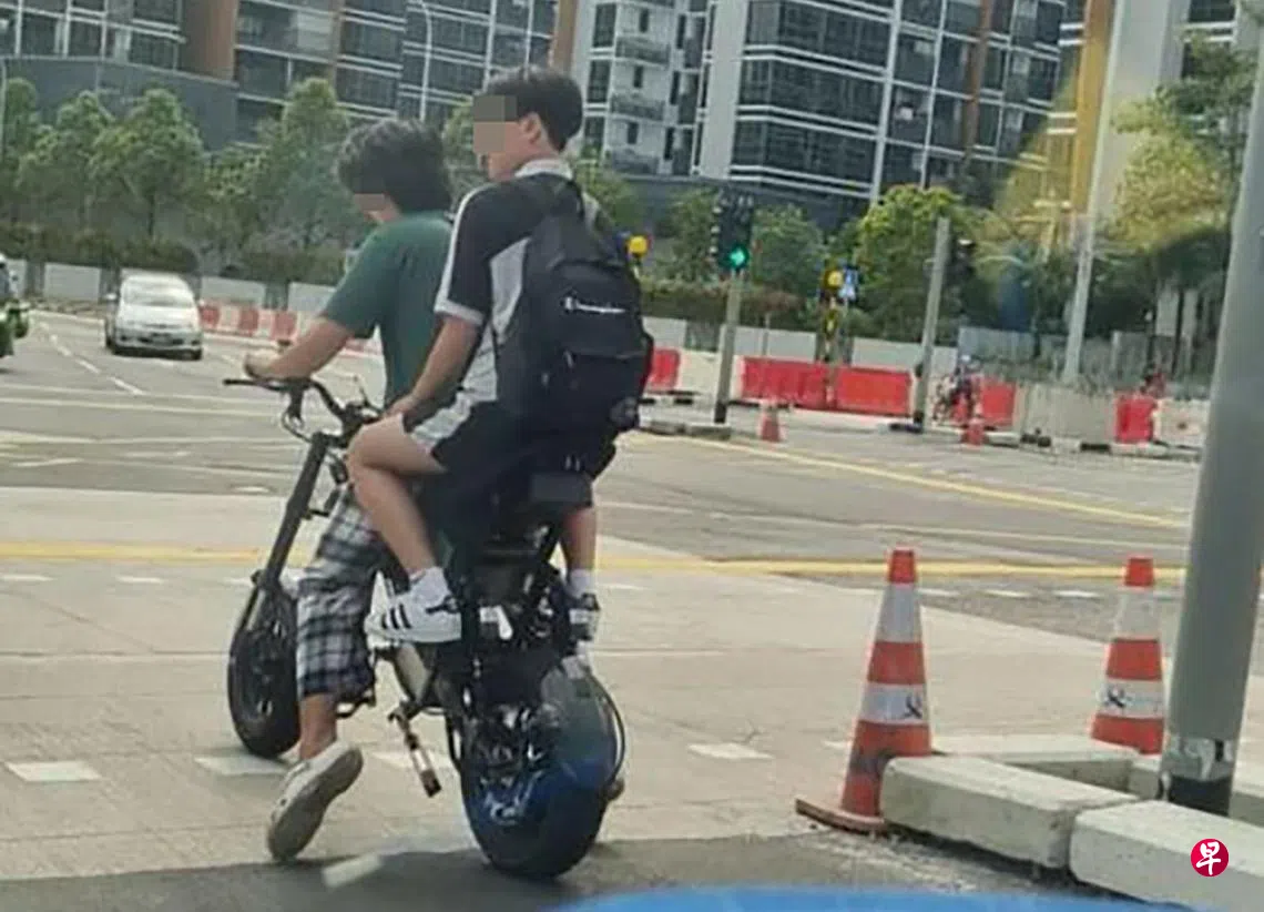 两名青少年被指在没戴头盔的情况下,在马路上共骑电动脚踏车,网友担心两人安危。