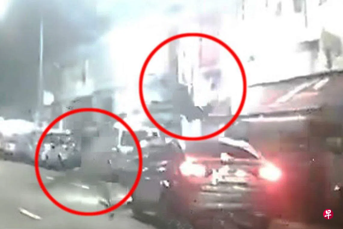 芽笼深夜发生骇人车祸,两名行人在过马路时,一辆汽车被指没放缓车速,迎面将两人撞飞后扬长而去。