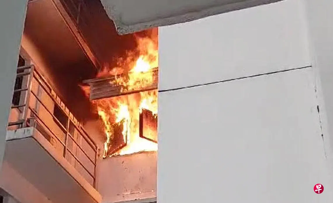 疑电流短路,海军部组屋五楼单位失火,玻璃窗被烧毁掉落,有居民因吸入过多浓烟被送院检查。