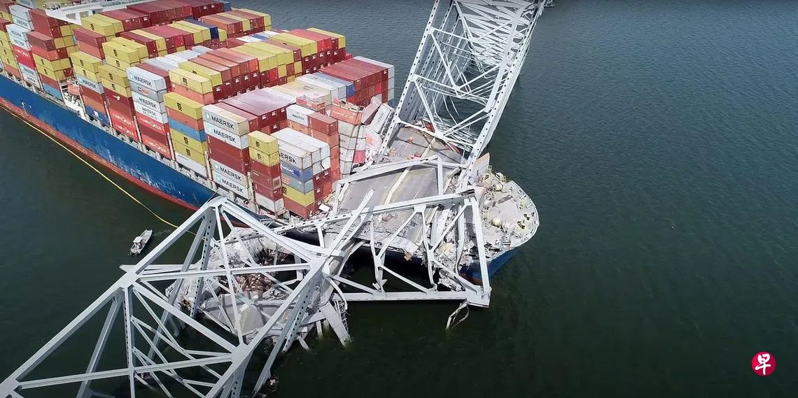 美国东岸时间星期二(3月26日)凌晨1时30分(新加坡下午1时30分)左右,工业城市巴尔的摩的弗朗西斯·斯科特·基大桥(Francis Scott Key Bridge),遭新加坡注册的集装箱船“Dali”撞击坍塌,桥上20人和多辆汽车掉入河中。