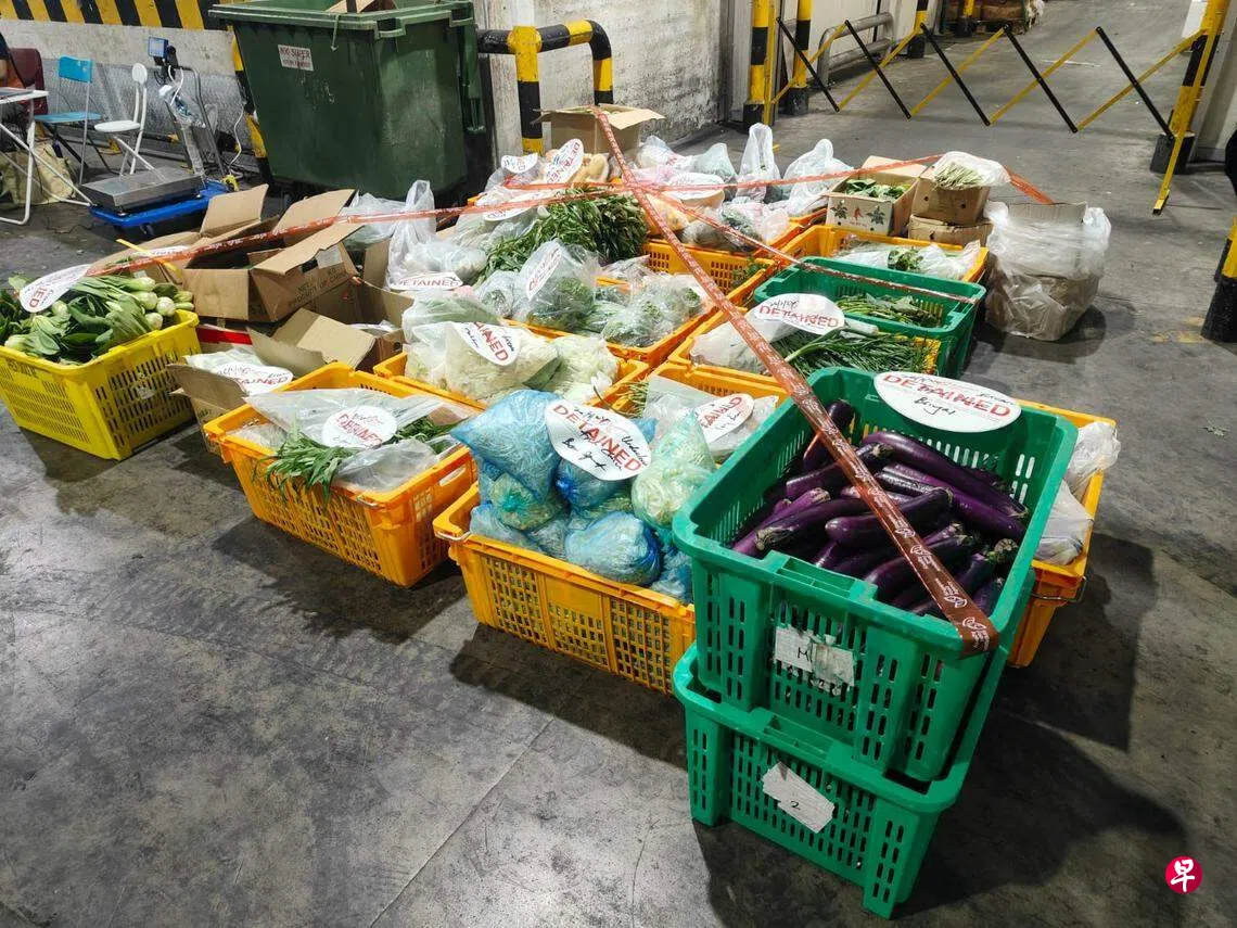新加坡食品局两天内在兀兰关卡查获约1.5公吨非法进口的新鲜农产品和加工食品。