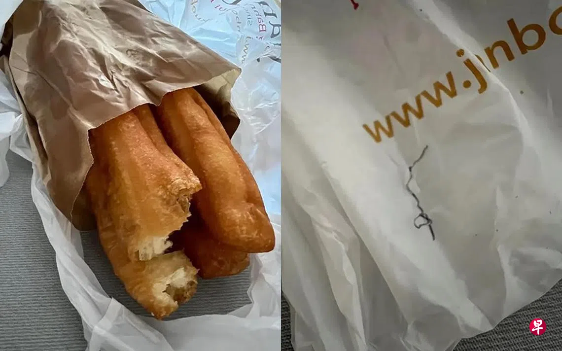 一名女子星期六(3月30日)在脸书贴文,称自己从淡滨尼81街第823A座组屋的咖啡店购买了油条,岂料发现油条内竟有钢丝。她表示,倘若小孩误吞下钢丝,后果不堪设想。“有鉴于此,我不会再光顾。”
