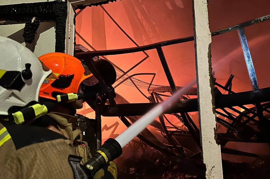 民防部队抵达火场时,发现火势已经非常猛烈,蔓延到一排两层楼工厂的三个单位。