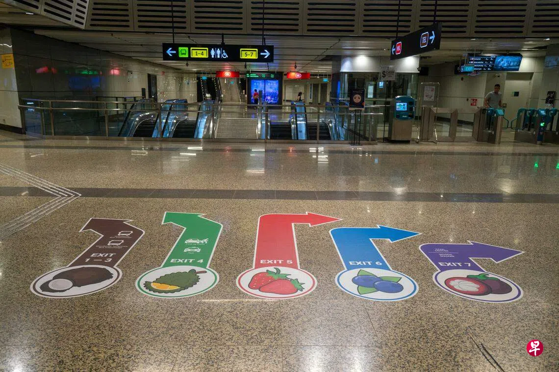 SMRT在兀兰设置以水果为设计的彩色路标,帮助不熟路的乘客及失智症患者等特需群体在繁忙的公共交通站点找路,前往指定出口、德士站、厕所等。
