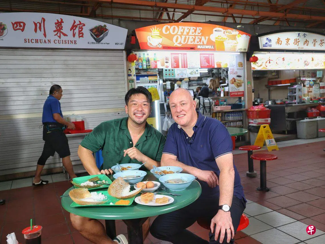 谢铭也向拉克森讲解本地熟食中心的文化,两人更互相分享彼此最喜欢的新西兰旅游景点。