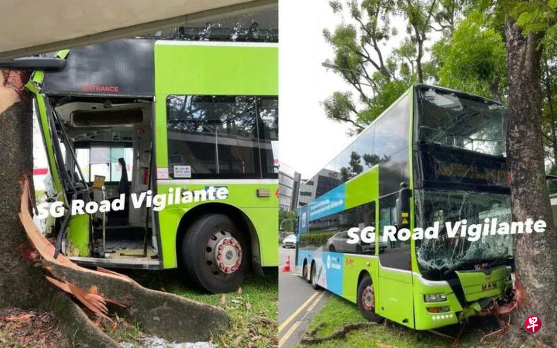这起事故发生在4月16日早上9时25分,SMRT旗下的911号巴士正沿兀兰2道前往兀兰综合交通中心时,半途不知何故失控冲上路堤,猛撞大树。