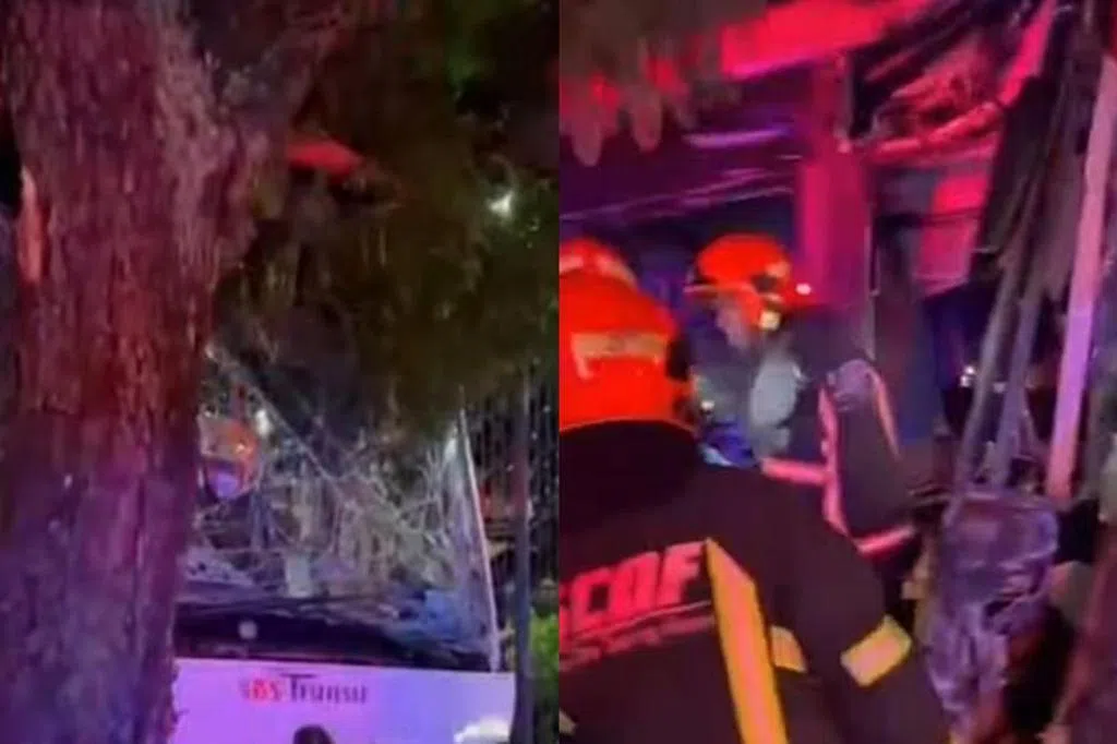 SMRT巴士撞大树,58岁车长不幸身亡。