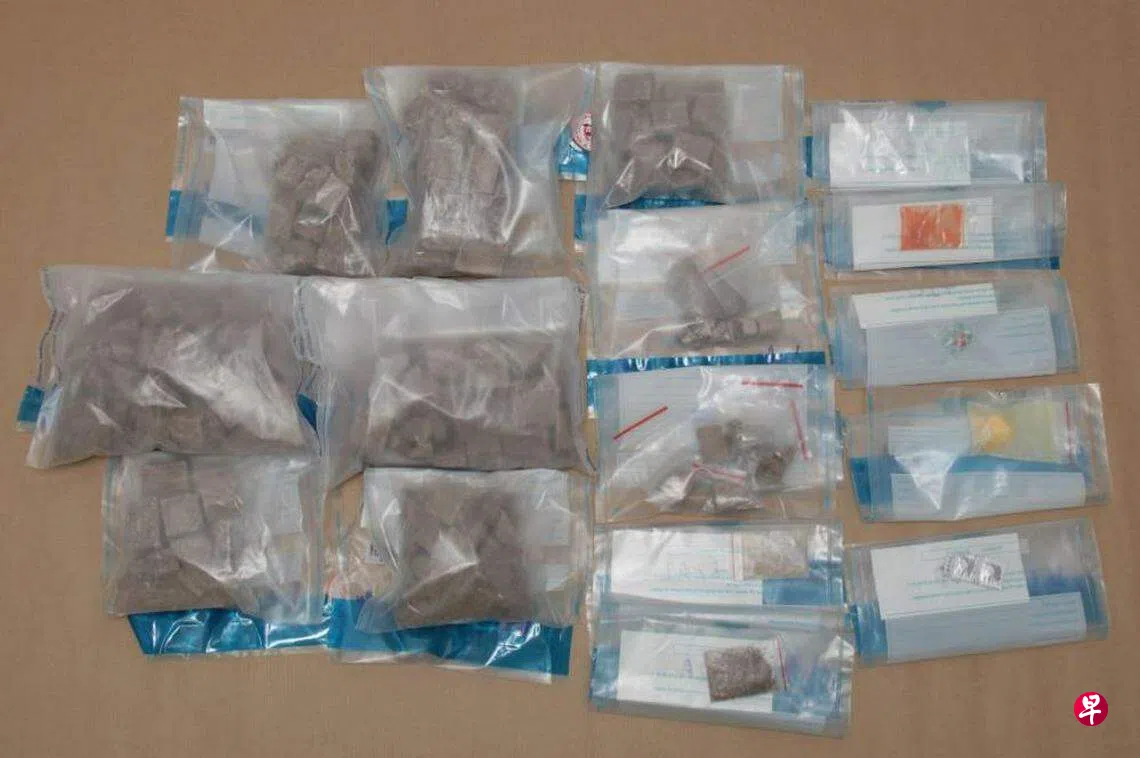 肃毒局人员随后到男子位于麦波申惹兰清吉(Jalan Chengkek)一带的住家展开调查。从单位里搜出的各类毒品就包括2443克海洛英、20克爱他死、10克冰毒、10克大麻和两颗埃利敏5号(Erimin-5)迷幻药。