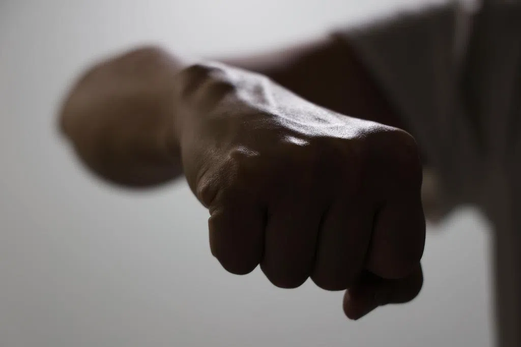受害人不走,两人因此发生口角,受害人捡起木板就往被告的方向挥去。被告立即反击,朝受害人的脸挥拳,导致木板掉落,受害人也被打倒在地。
