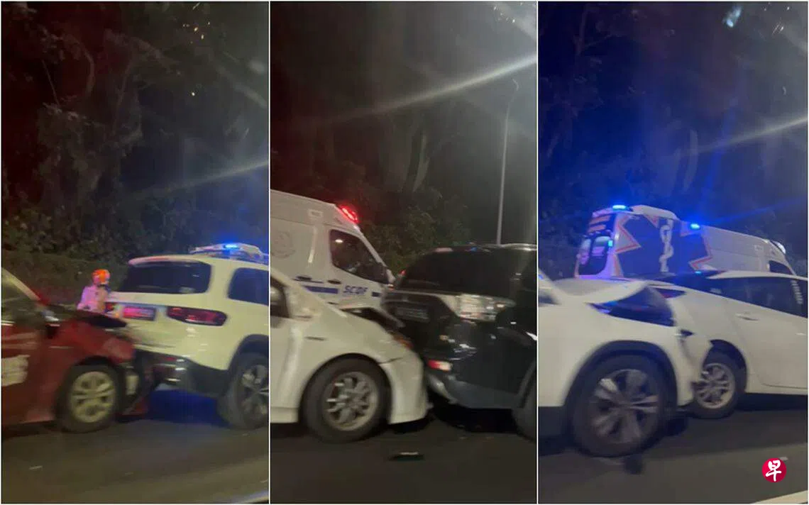 在Telegram群组流传的视频可见,事发路段发生六车连环撞,当中包括一辆德士。至少有四辆汽车的车身受到不同程度的损毁,包括车尾或引擎盖被撞。现场也有多辆警车和救护车。