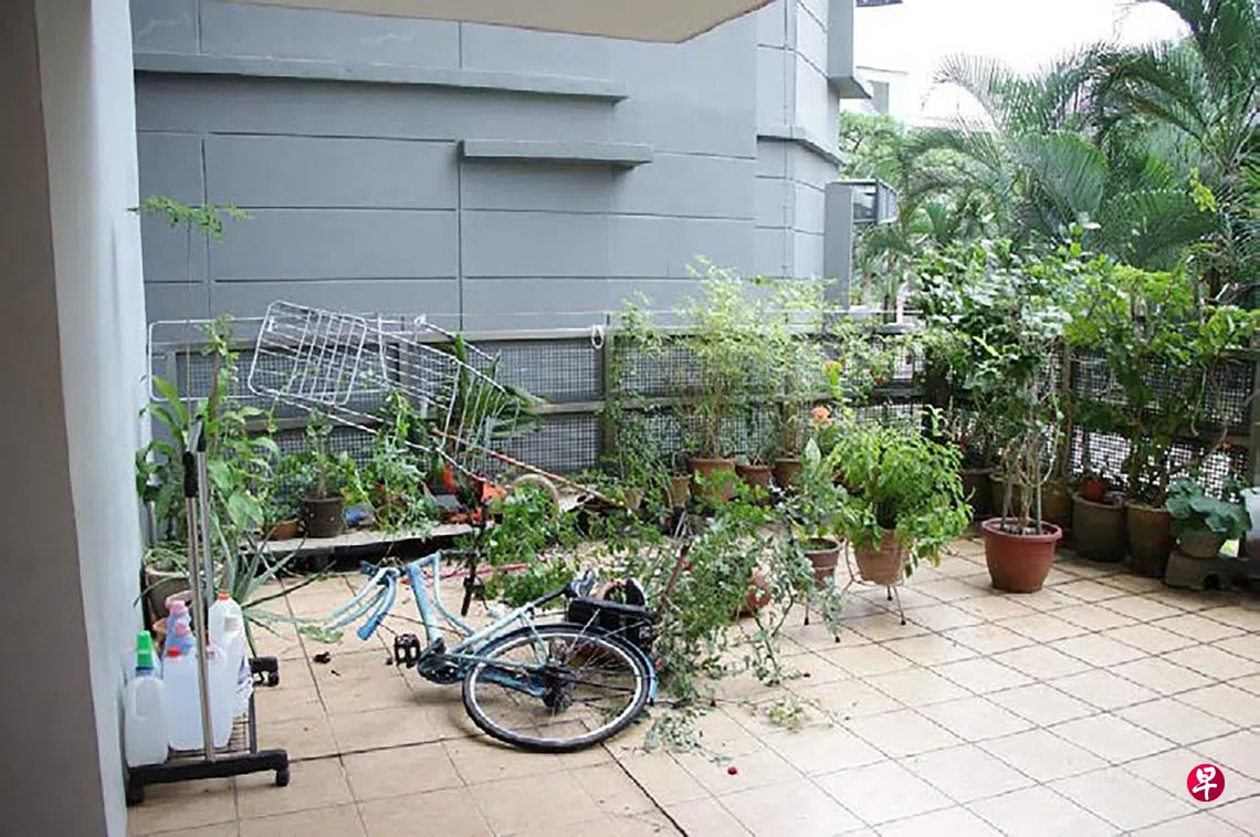 另外,被告在破坏电眼一个月后,于9月21日深夜至22日凌晨间来到附近第386座组屋的14楼,他声称因失眠而感到沮丧。当时他发现一辆被遗弃的脚踏车,就捡起来往下扔,之后返家。脚踏车被扔到二楼,落在电梯旁的走廊上,砸破多个花盆,居民隔天见状报警。