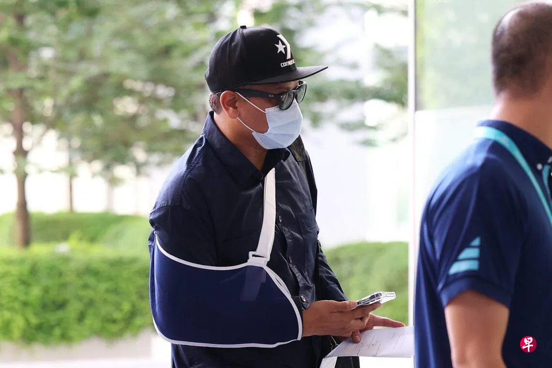 被告右手受伤,手臂系着固定带出庭,他面控时表示有意聘请律师。