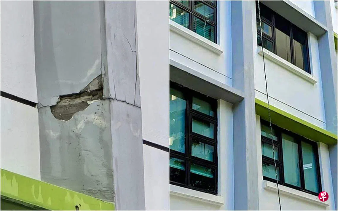 根据网民星期一(4月22日)在脸书页面Complaint Singapore上载的照片,可清楚看到组屋外墙出现多条裂缝。
