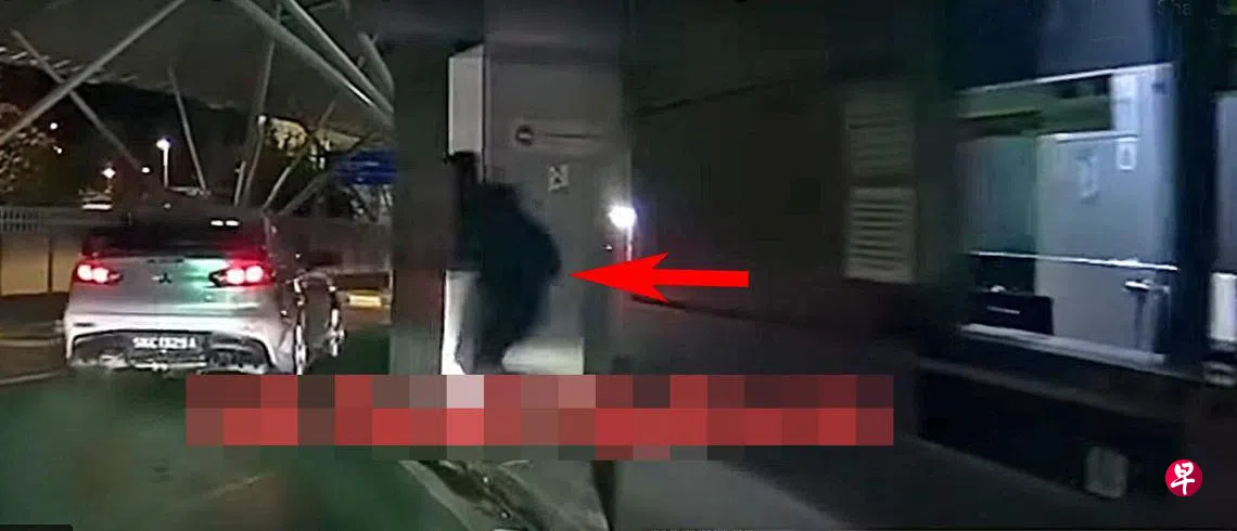 狮城车新山疑似“闯”关卡,职员从站内冲出急追。