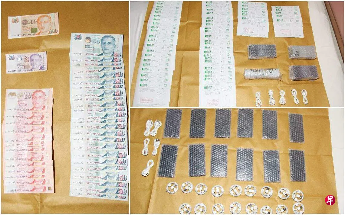 警方过后也起获几台山寨手机和零件、假发票和约1440元现款。