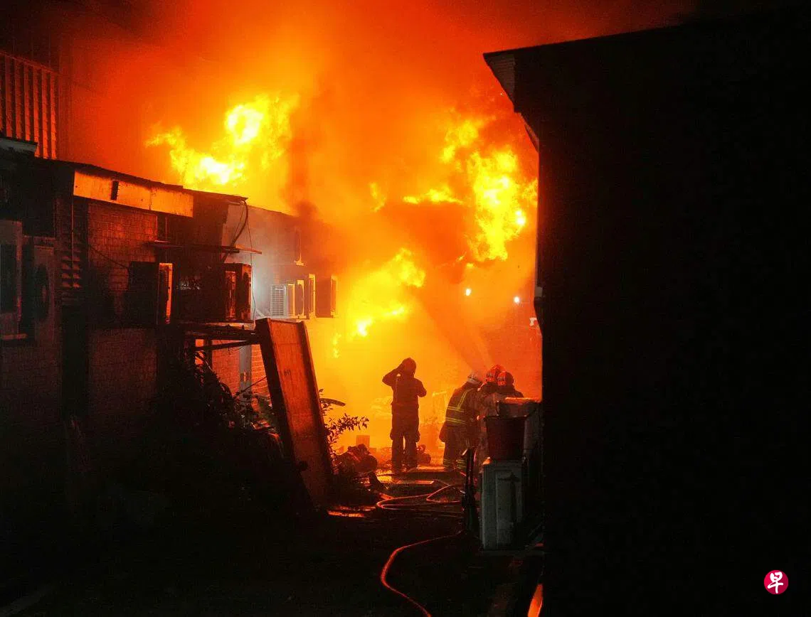 记者晚上10时30分抵达现场,多名消防员正在射水灌救,空气弥漫着浓重的烧焦味,黑烟烈焰直冲天际,现场不时传出爆炸声。多名居民说,失火单位经营修车生意,火势已蔓延至第二个单位。