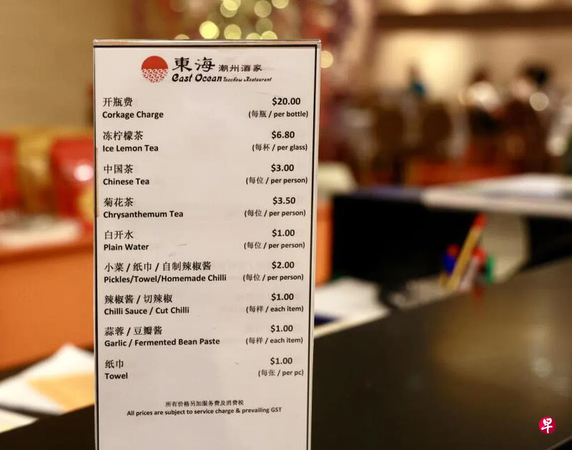 《新明日报》记者走访酒家,受访的餐厅经理赖先生(59岁)表示,其实餐厅有一个配套,提供顾客小菜、纸巾以及自制辣椒酱,每人收费2元,在不浪费的情况下,无限供应。