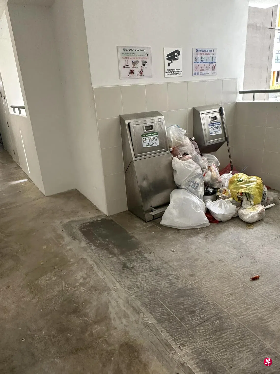 女子申诉,组屋单位外的垃圾槽总是被堵到难以打开,导致地上垃圾堆积如山。市镇会表示,目前在密切留意此事。
