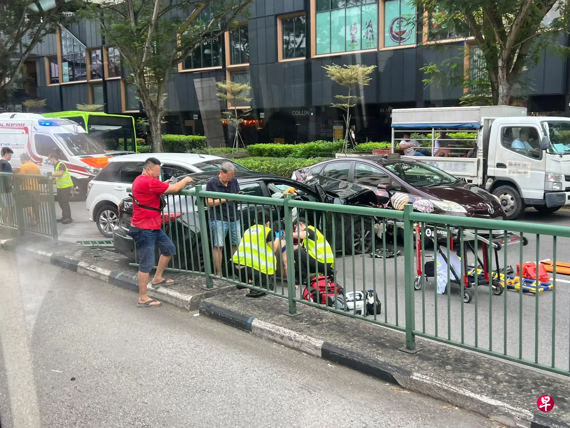 轿车在马里士他路冲破栏杆,导致四车连环撞,两人受伤送院。