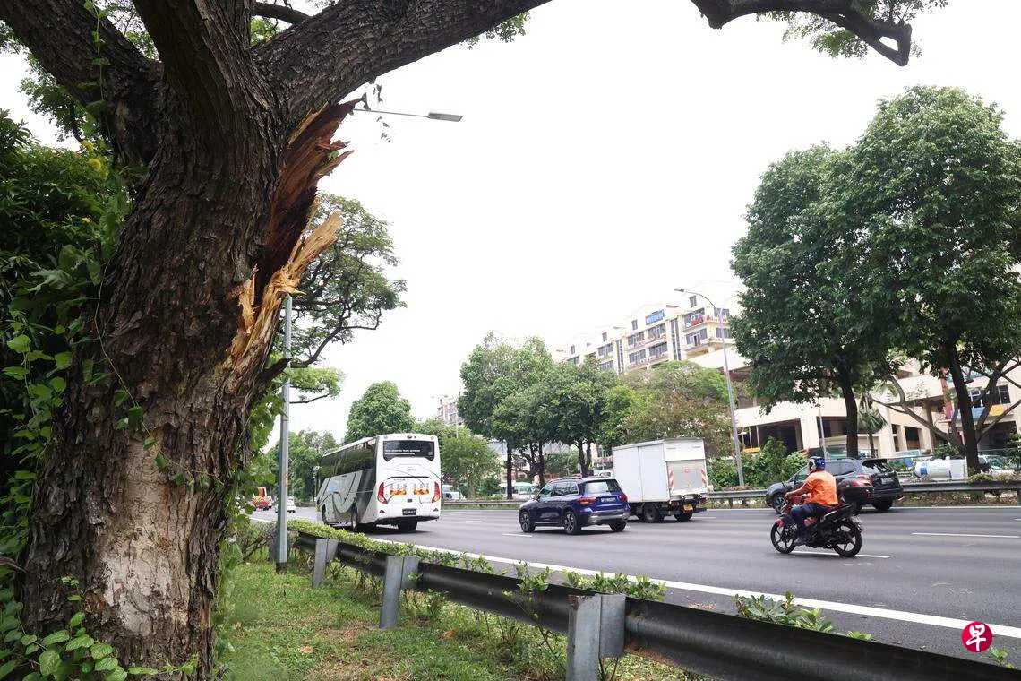 57岁的李姓送货司机受访时说,当天早上9时半左右,他走到工厂外,站在高速公路旁休息时,看到该辆货柜车似乎准备靠边停车,结果在巨响中撞断枝干。断裂的树干占据高速公路左边两条车道,造成了约一个多小时的交通阻塞。