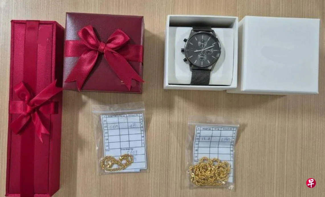 通过调查,宏茂桥警署的警员确定盗刷者的身份,并在星期一逮捕一男一女。初步调查显示,39岁女子找到受害人的信用卡,随后与一名40岁男子一起盗刷了3400元,购买一只手表、一条手镯和一条金链,这些赃物都被警方查获作为物证。
