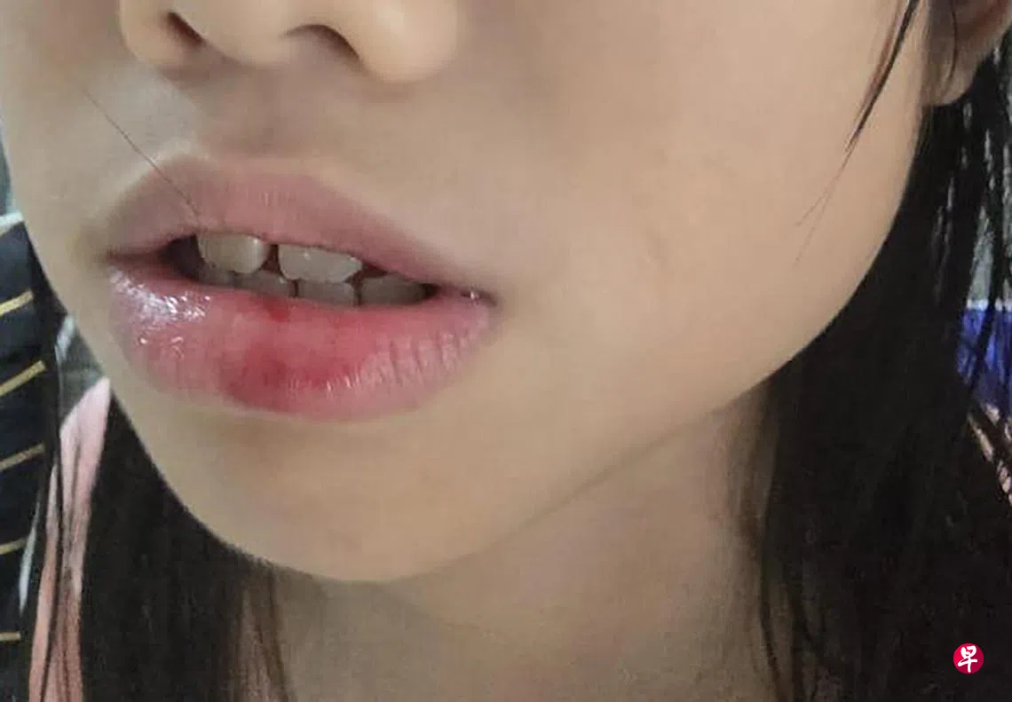 “女儿当时有哭,然后说伤口痛,但医疗人员说都是小伤,我也没多想,就先带女儿回家。到家后大概下午1点多,女儿冲凉之后才给我们看了伤口。”