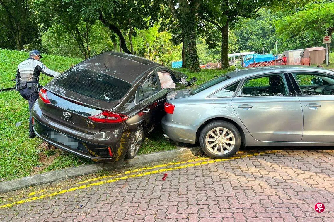 89岁老翁疑刹车不及,驾驶汽车冲上公园草坡,连带撞上其他三辆车。在场公众发挥互助精神,得知发生车祸后上前把老翁和他的90岁男乘客扶出车外,两人事后一同送院。