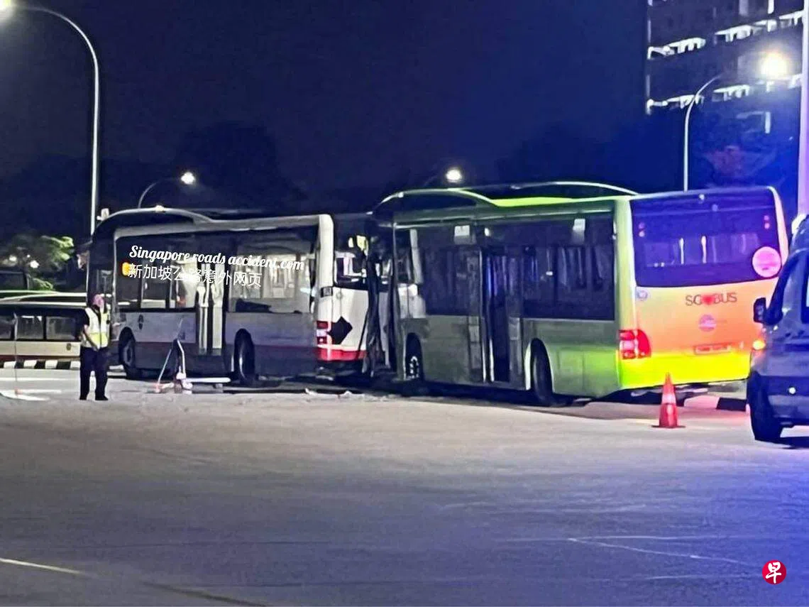 根据社交媒体流传的照片,两辆巴士一前一后撞在一起。后方的绿色巴士损毁较严重,车门似乎被压扁,前方的白色车辆尾灯部分碎裂。事发后,现场来了至少两辆救护车。