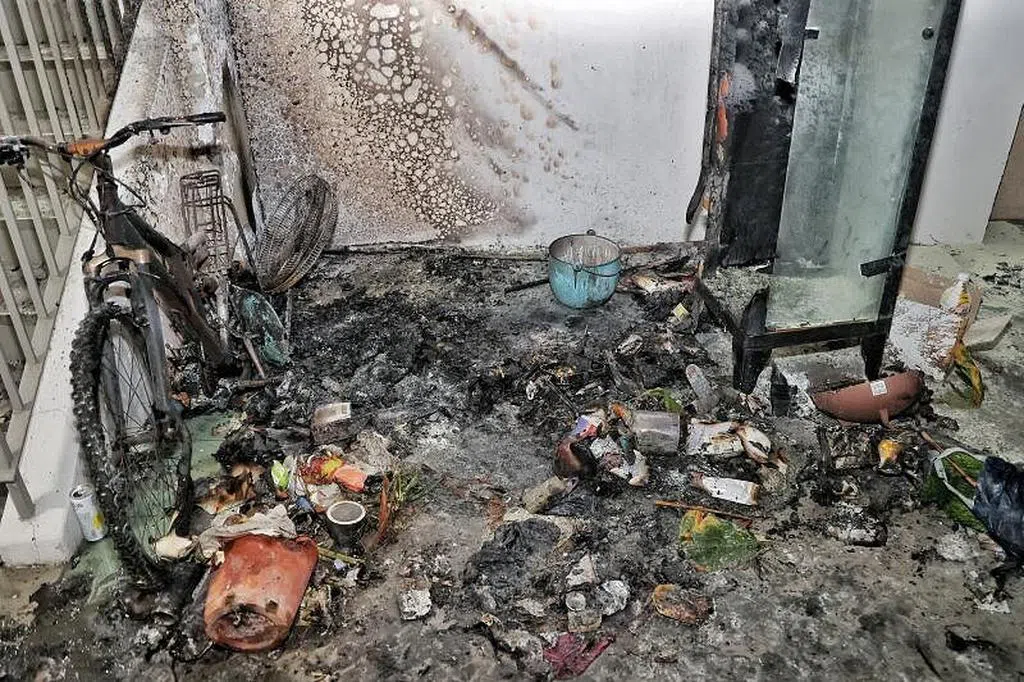 阿叔疑在组屋走廊焚烧物品,岂料酿火患,阿叔吸入浓烟送院。