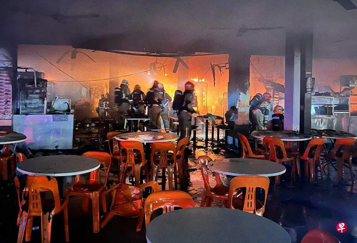 宏茂桥一咖啡店深夜失火,九个摊位全数烧毁,18人紧急疏散。负责德义区事务的国务资政李显龙到场视察,慰问受影响的摊主和居民。