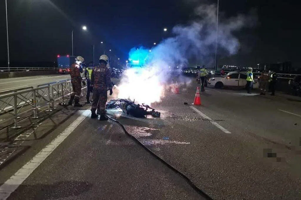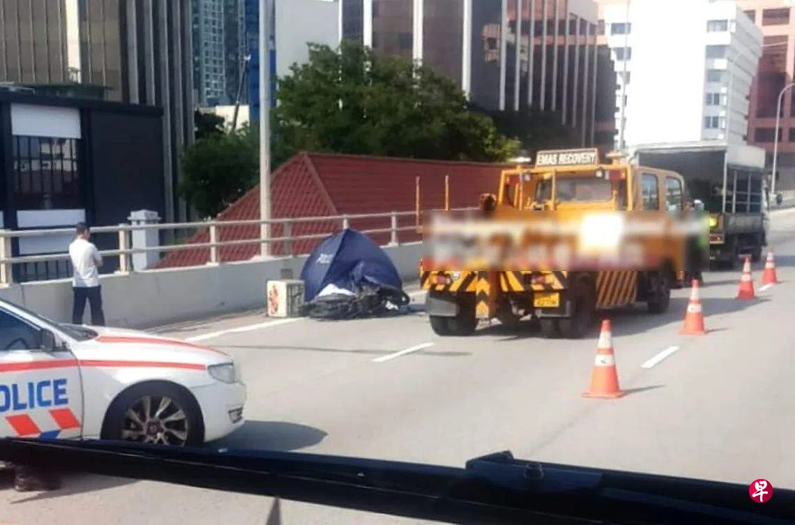 有网民星期二晚上在社交媒体脸书贴文,并附上车祸的相关照片。事发现场有四条车道,电单车事后倒卧在左边路肩,上方也放置一个警方的蓝色帐篷。