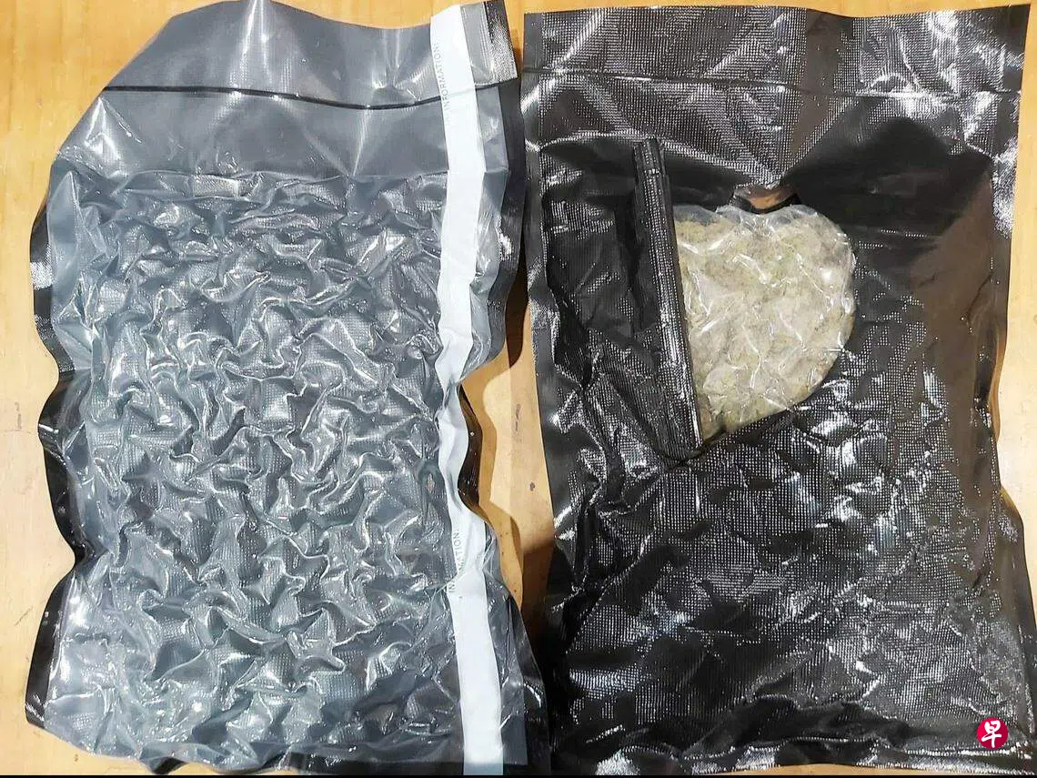 进一步检查后,移民局人员在申报为旅行包的物件里头,发现两包真空包装的植物类物质。初步调查显示,真空包装里的物质是大麻。
