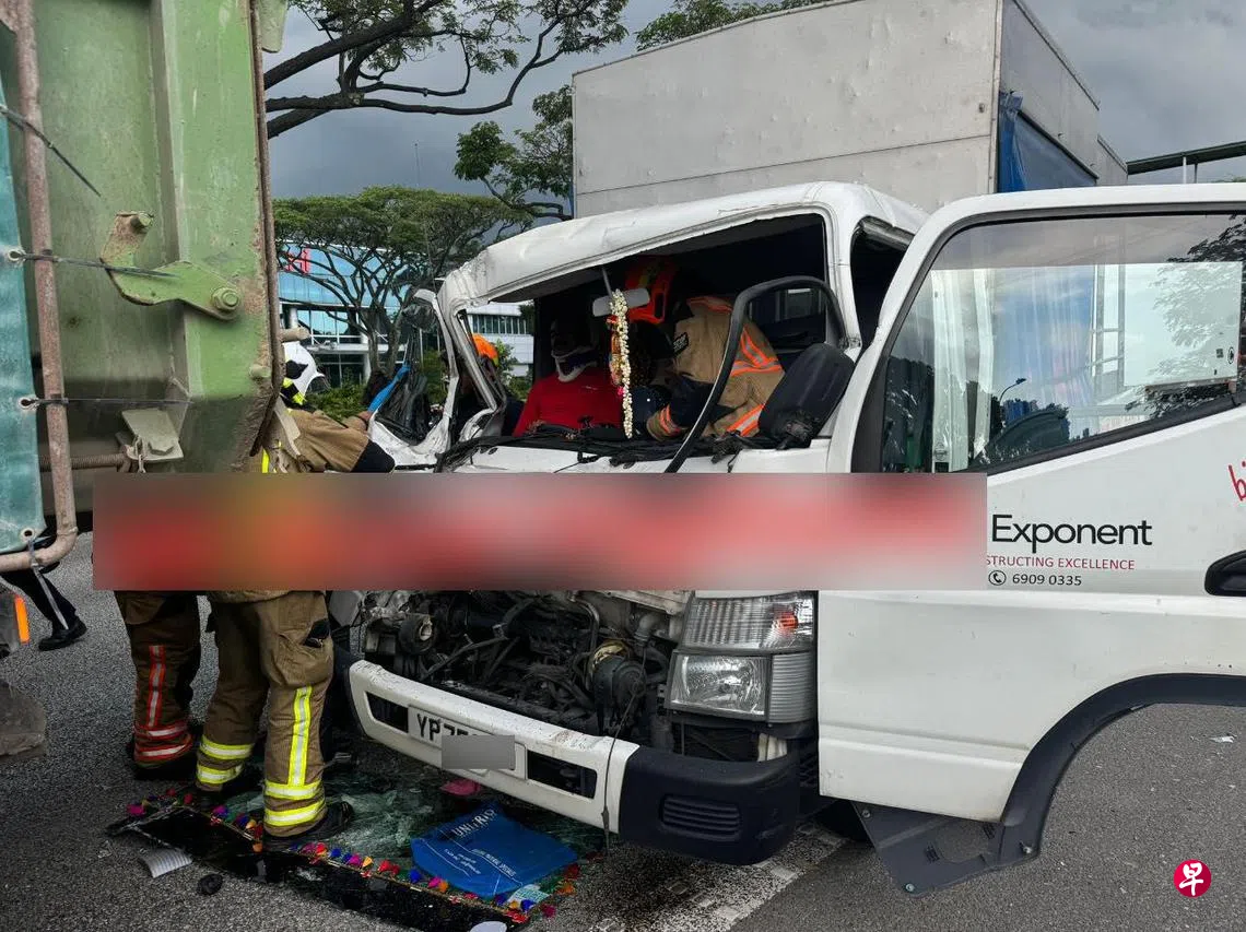 两辆罗厘和一辆倾斗罗厘连环撞,罗厘司机一度受困车内,被民防人员救出后送院。