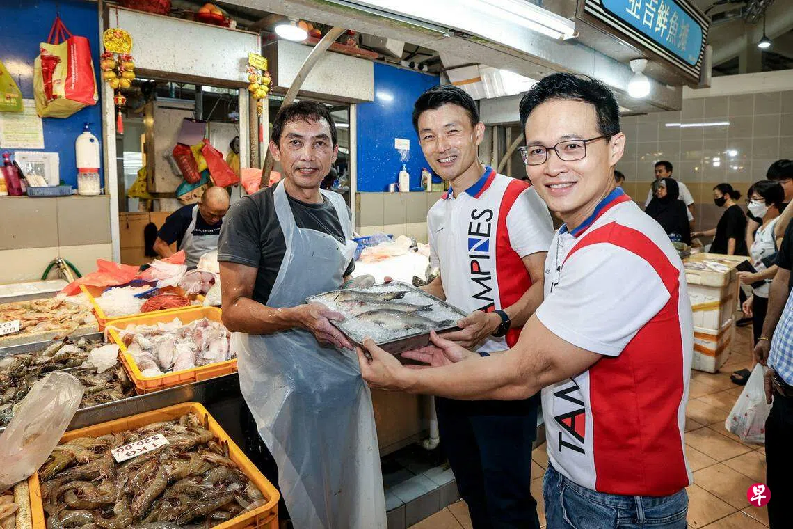 同是淡滨尼集选区议员的永续发展与环境部兼交通部高级政务次长马炎庆与东北区市长朱倍庆,星期六(6月15日)到巴刹了解翡翠鲈鱼的销售情况。