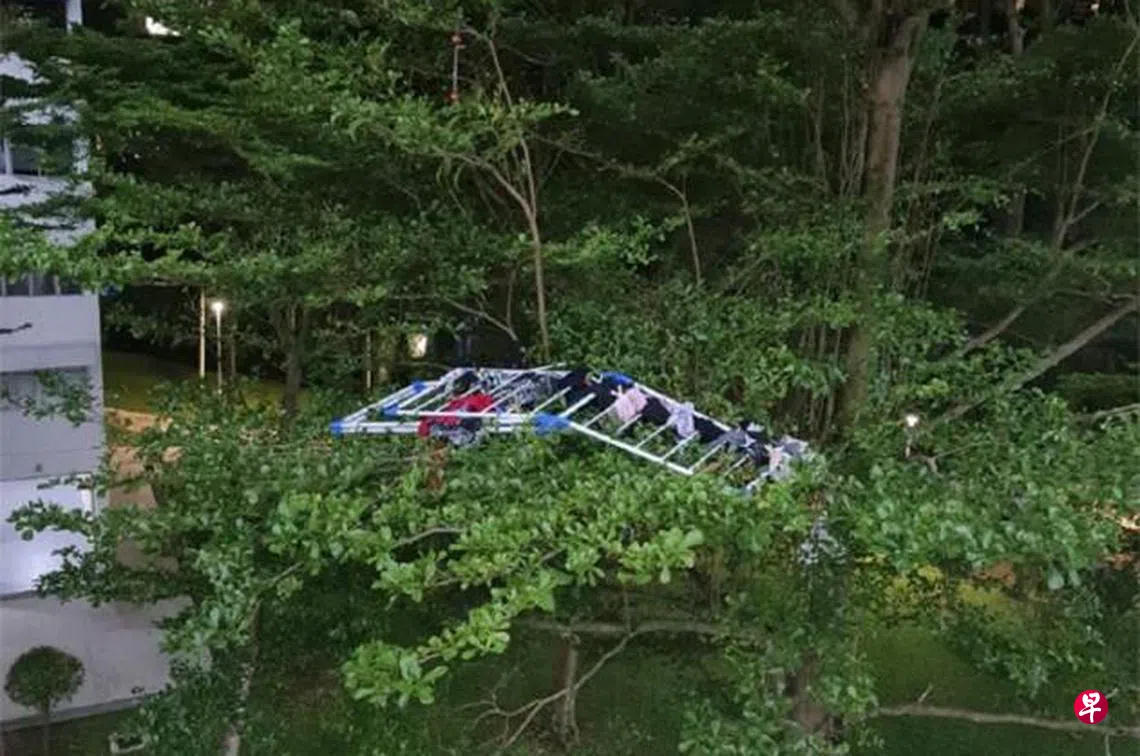 被告住在锦茂路第16座组屋,今年4月4日凌晨2时左右,与妻子争论后,从住家五楼扔下晾衣架。
