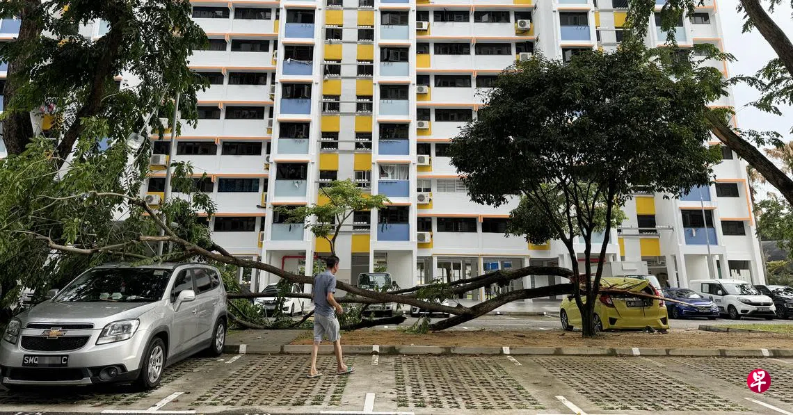 居民陈女士(60岁)则说,星期天早上7时许要关窗时,看到几辆车被枝干砸中,丈夫急忙通知其中一名车主。“我丈夫通知楼上邻居,他是灰色车的车主。”