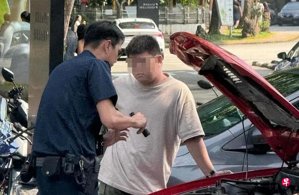 根据脸书页面SG Road Vigilante的贴文,一辆红色三菱汽车停在露天停车场,被到场的警员发现车牌无效。